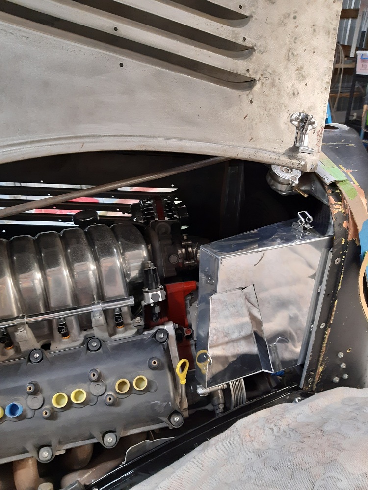 I also made a washer tank from alloy to fit behind the booster. This side of the engine bay is the busy side so I will only open the left side for display. Only an alternator over there that will get polished too. In another life I would probably make all this from stainless to save polishing over and over. There is a power steering pump and box hiding down there too. Now to re-polish it all, you can see the corrosion on the intake manifold already.