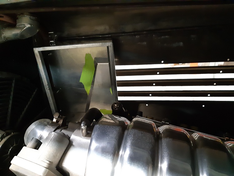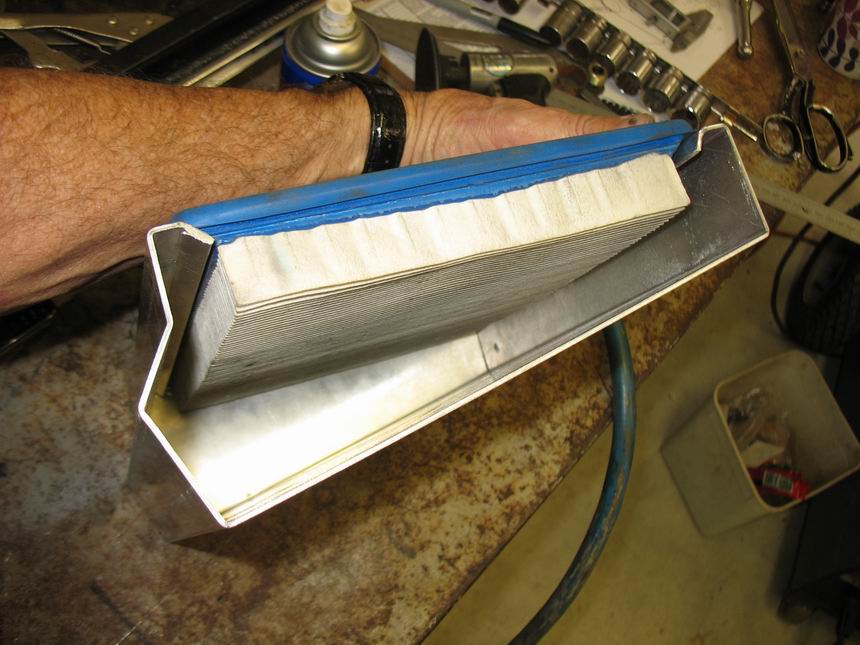 Then matched them up. Total area is 10 sq inches which is more than enough. By the time the suction noise gets out of here it will be down to zero, and all that air bypasses the radiator. No need to seal this as it will be a high pressure area in front of the radiator which will also help.