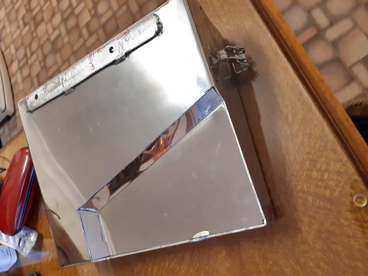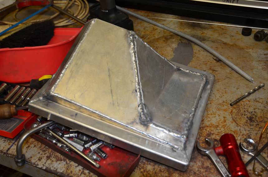 I then welded it up, my first alum welding job. I rang Ian Eliason who talked me through all the settings on my TIG. A fair bit of grinding required but not bad for a first effort. Sad thing is that I seldom do this so now have resorted to just tacking things together and getting Alex at Stainless Bits to weld it for me, much neater.