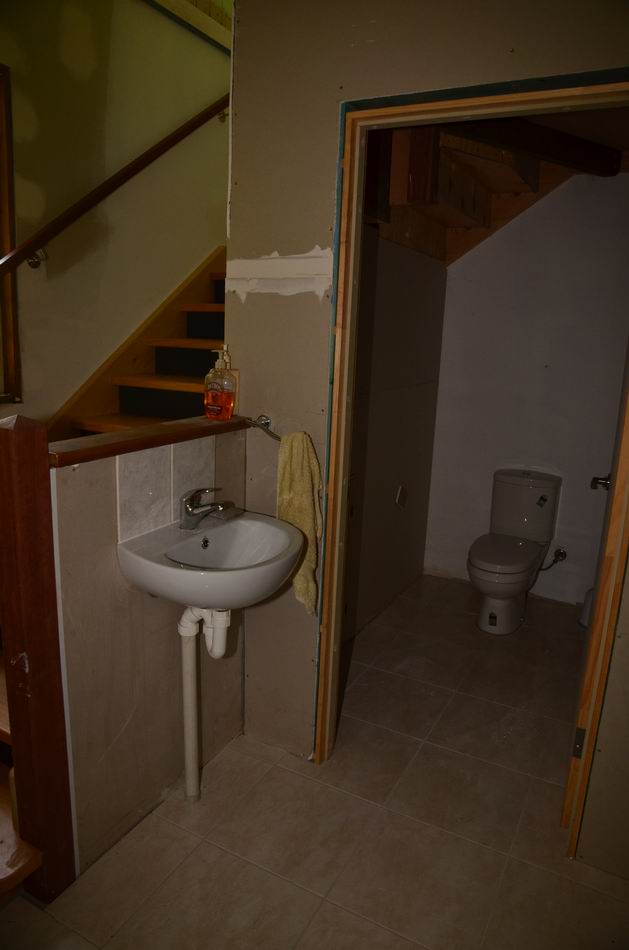 There is now a toilet under the stairs, and a wash basin.