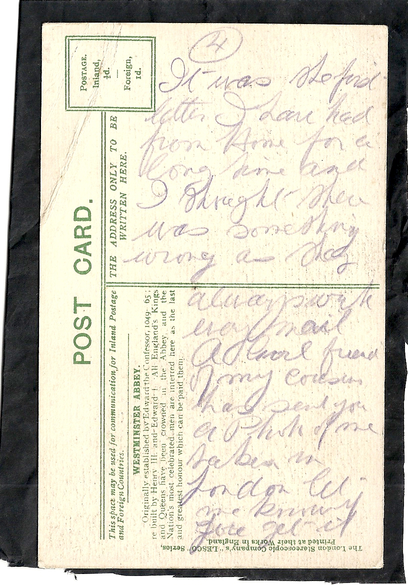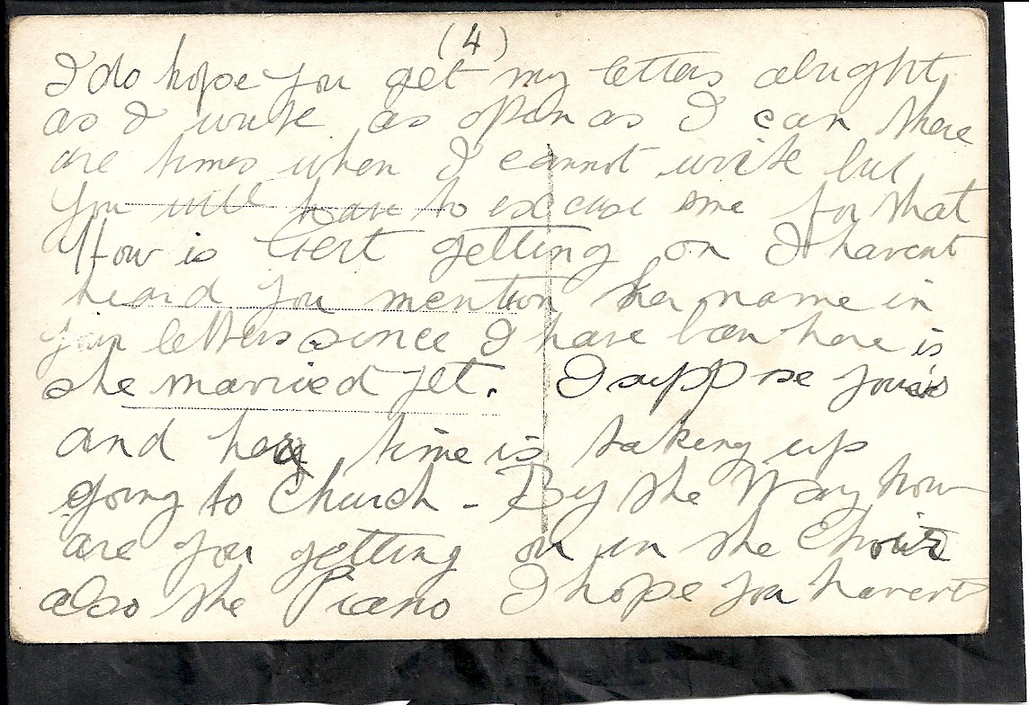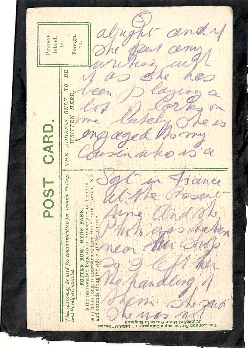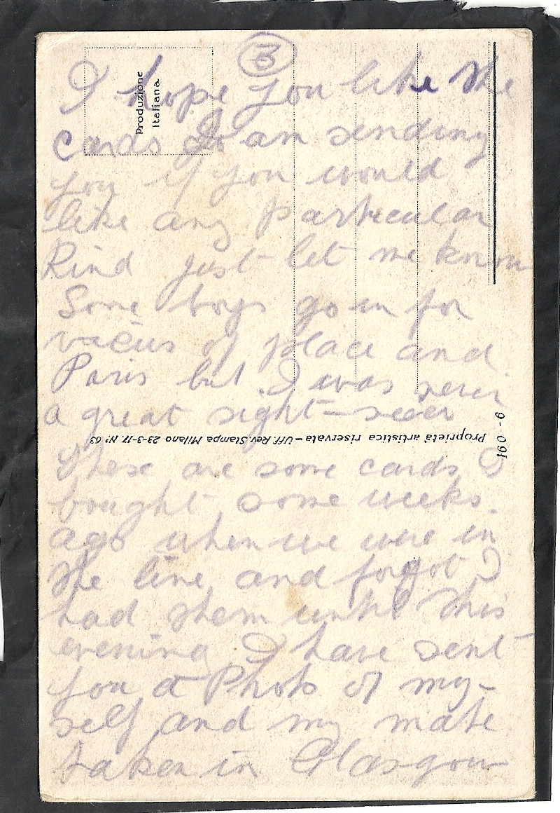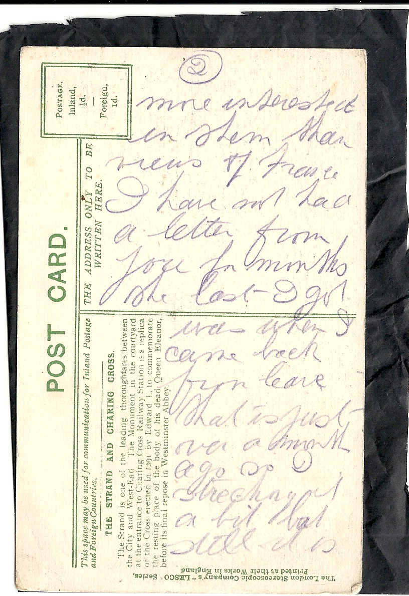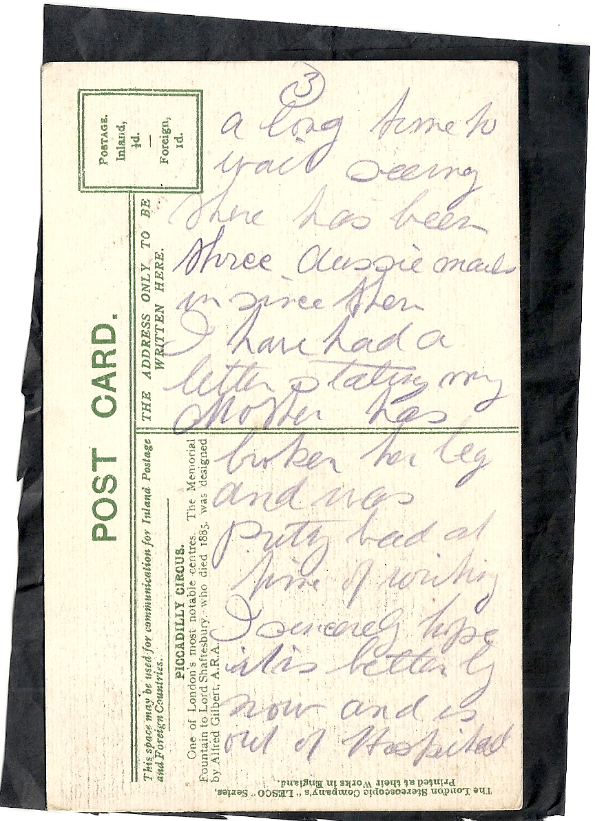 These letters are not full of information about the war as the censors had to read each one. The more interesting ones would have been the ones he received from Nellie but he burnt them after reading twice as he describes here. Nellie also burnt a lot of his letters in the backyard after he died. My mother described finding her out there crying as she threw them into the incinerator. Interestingly she left one for us to find and it is well worth a read. It was from his cousin Sadie in Canada. Link here.
